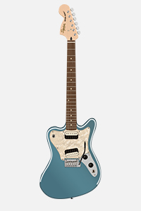 Zwei Squier Atomic Humbucker sorgen für einen gewaltigen Klang und werden über separate Volume-Regler gesteuert, wodurch die Zwischenposition des 3-Weg Toggle Switch unterschiedliche Mischungen beider Humbucker zulassen. Dank ihrem schmalen 1,5-Zoll-Sattel spielt sich die Super-Sonic blitzschnell und verfügt außerdem über ein Tremolosystem im authentischen Vintage-Stil mit komfortabler 24″ Mensur, was sich besonders für ausdrucksstarke Bending-Effekte eignet. Farblich präsentiert sie sich in Ice Blue Metallic und Graphite Metallic.